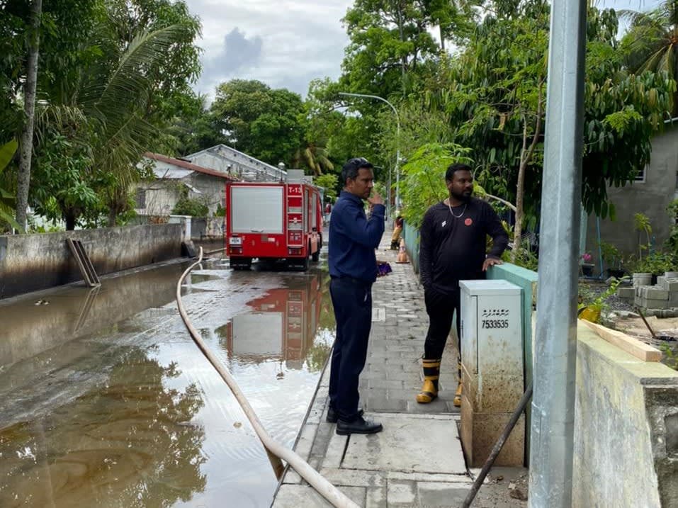 ބައެއް ސަރަހައްދުތަކުގައި ފެންބޮޑުވެ، ދުއްވާ އެއްޗެއްސަށާއި، ހިނގާބިނގާވެ އުޅުމަށް ދަތިތައް ކުރިމަތިވަމުންދާ ސަރަހައްދުތަކުން ފެން ހިއްކުމަށް ސިފައިންގެ އެހީތެރިކަމަށް އެދުމާއި ގުޅިގެން، އެމްއެންޑީއެފް ސަދަން އޭރިއާ ކޮމާންޑް ފުވައްމުލައް ސިޓީ ފަޔަރ ސްޓޭޝަންގެ ސިފައިން އެ ސަރަހައްދުތަކަށް ގޮސް، މިއަދު މެންދުރުން ފެށިގެން ފެން ހިއްކުމުގެ މަސައްކަތުގައިދަނީ އެހީތެރިކަން ފޯރުކޮށްދެމުންނެވެ.