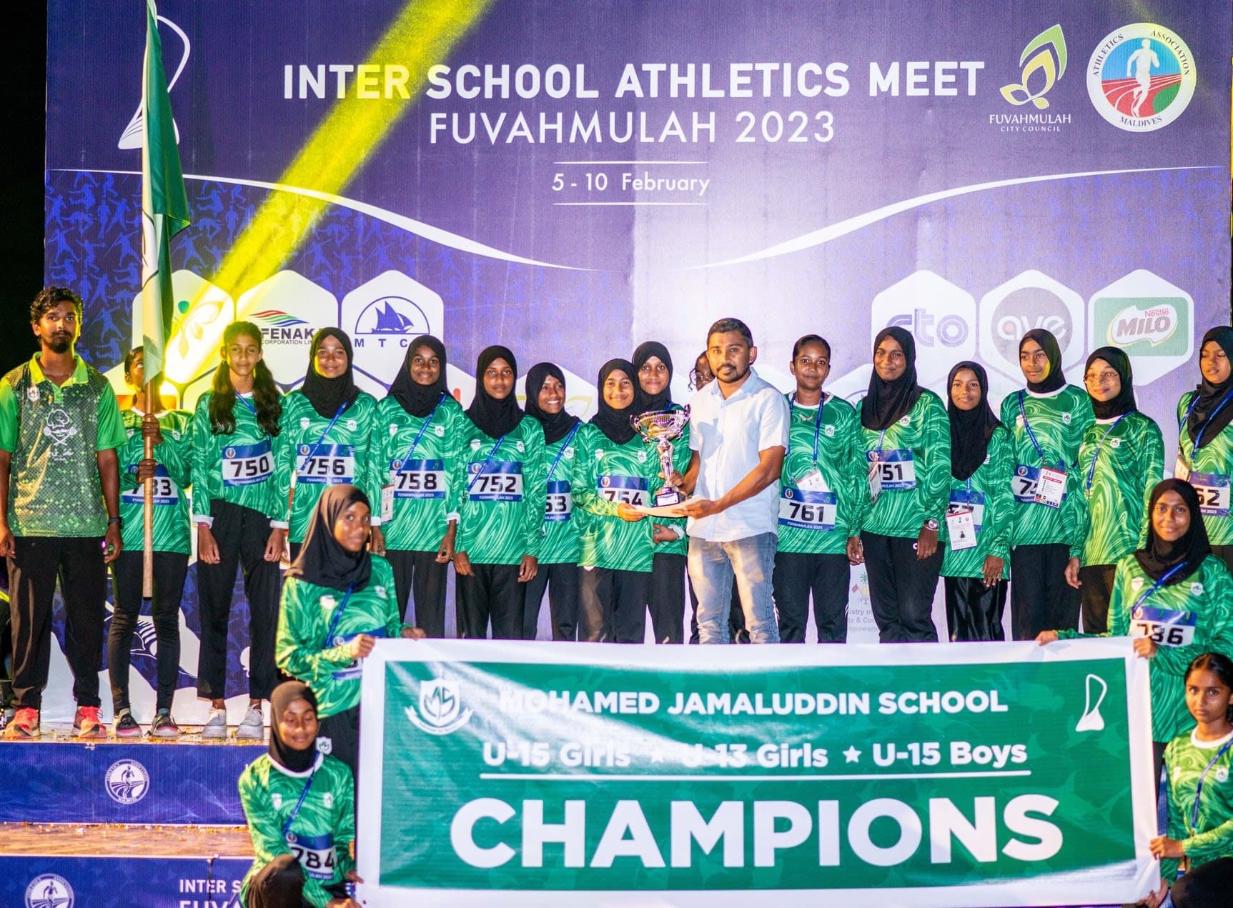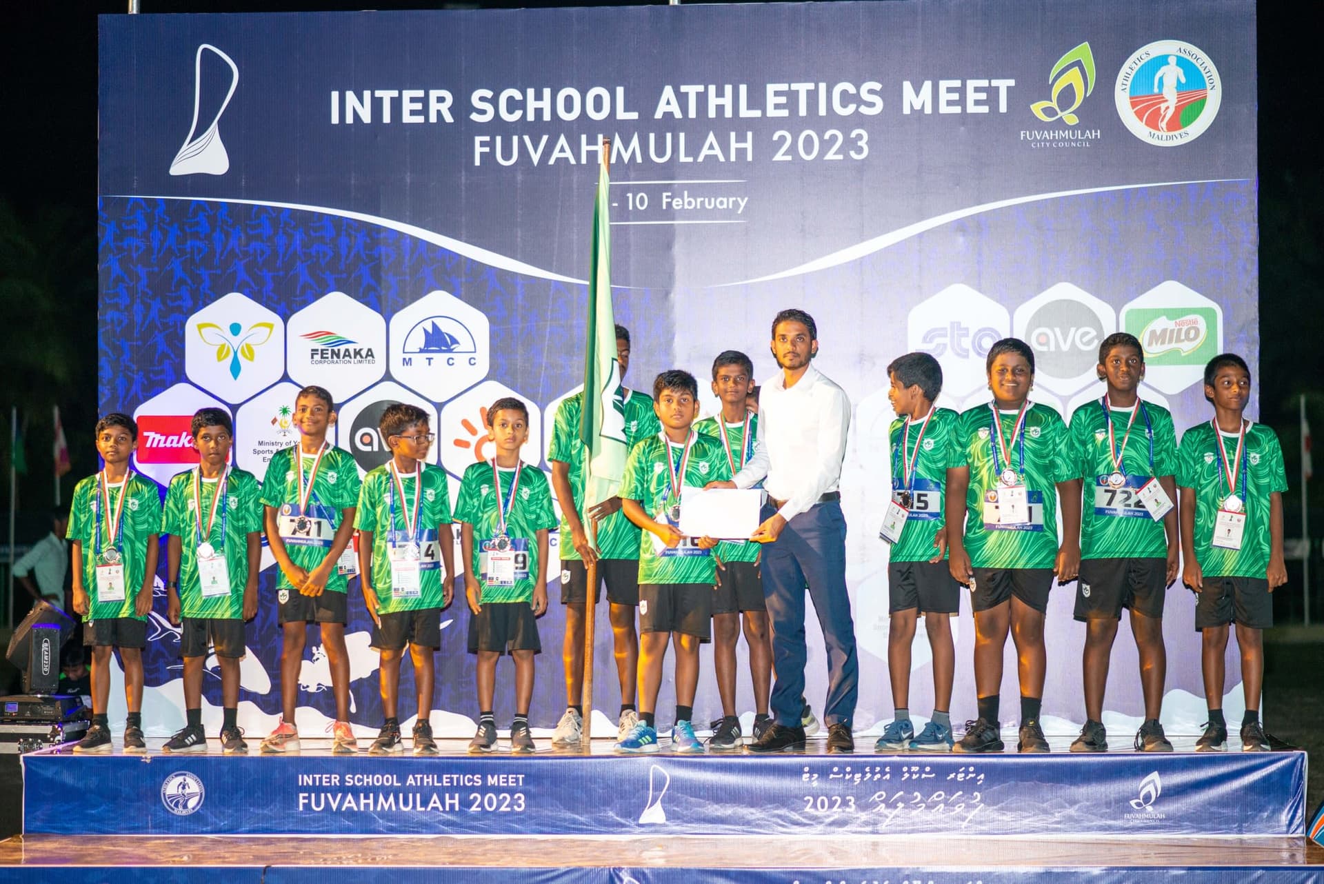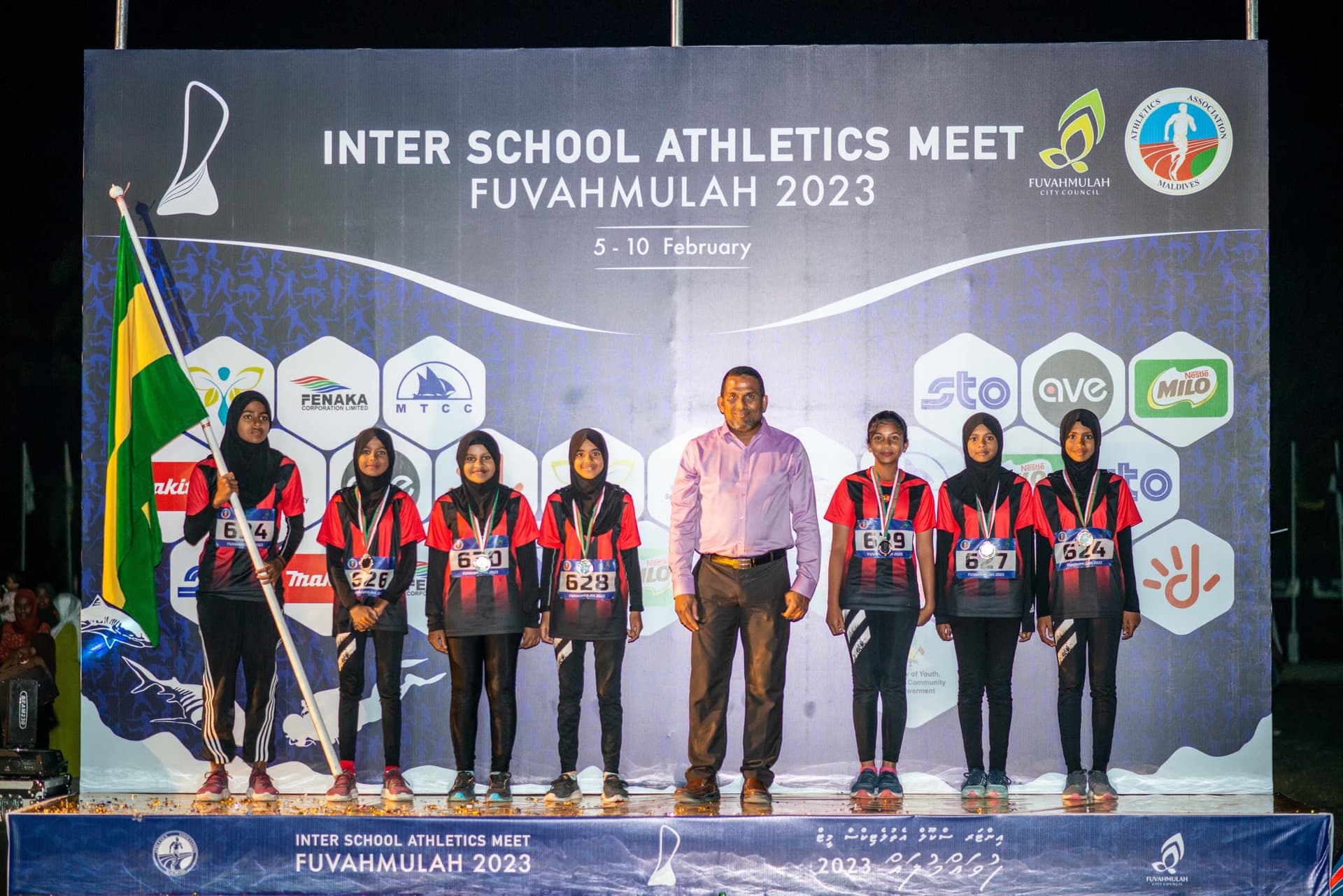 ފެބްރުއަރީ މަހުގެ 10 ވަނަ ދުވަހުގެ ރޭ ފުވައްމުލައް ސްޓޭޑިއަމްގައި އެތުލެޓިކްސް މުބާރާތް ބޭއްވުމުގެ ނިންމުމުގެ ރަސްމިއްޔާތު ބޭއްވުނު އިރު އިއުލާން ކުރެވުނު ވަނަ ތައް ތިރީގައި މިވަނީއެވެ.
