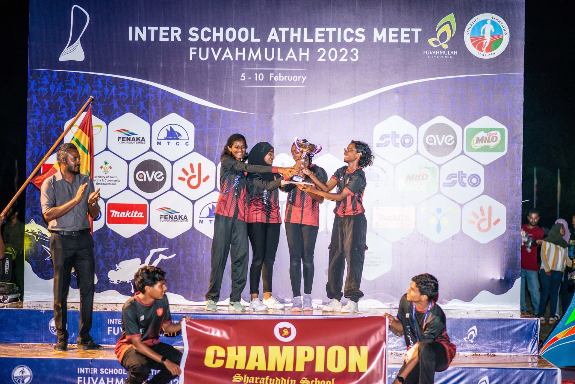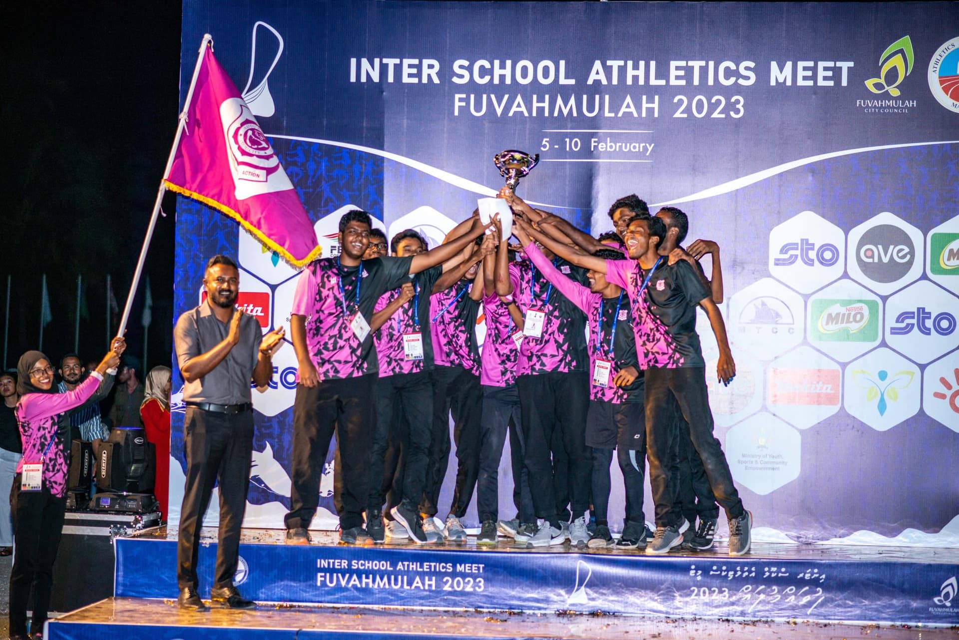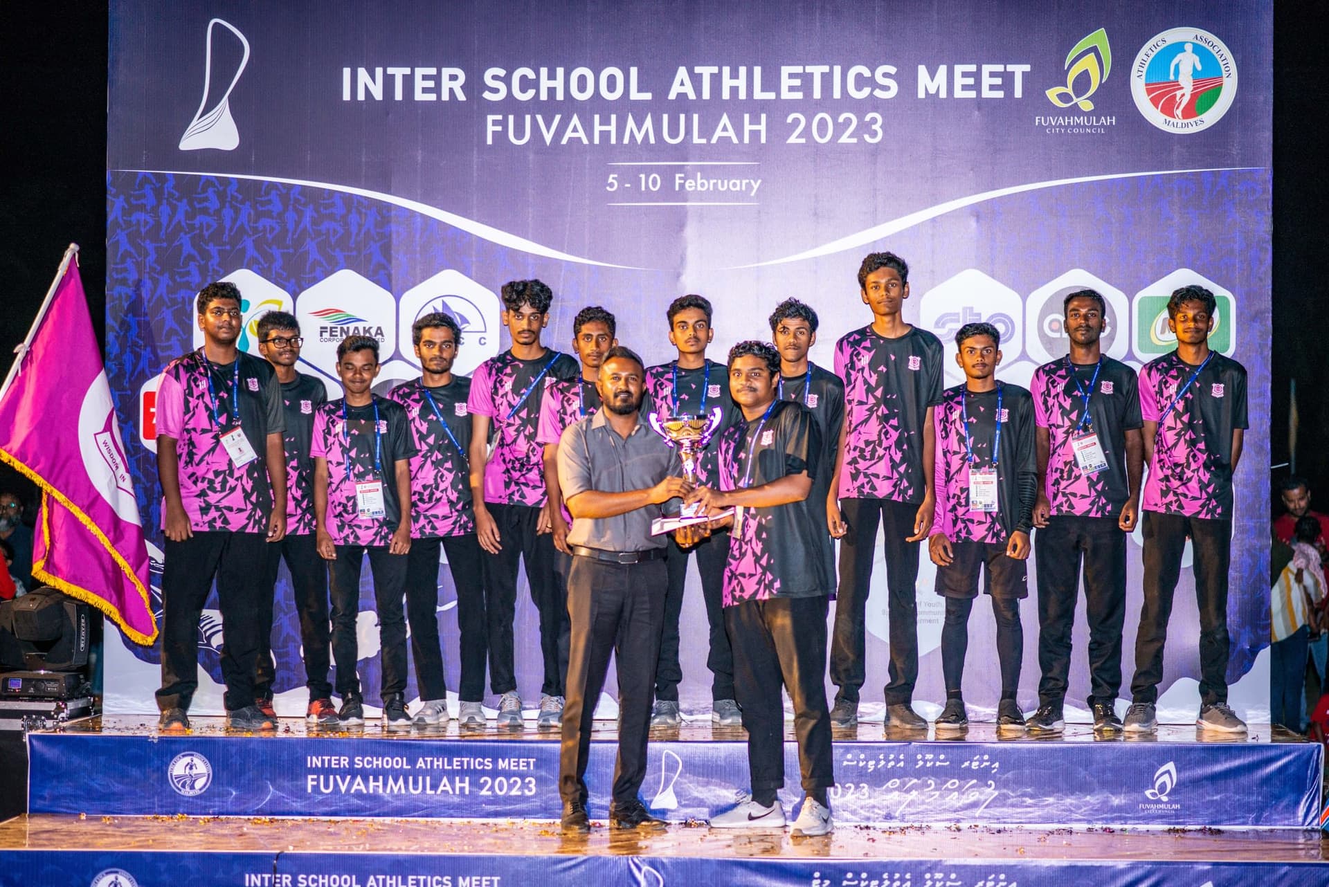 ފެބްރުއަރީ މަހުގެ 10 ވަނަ ދުވަހުގެ ރޭ ފުވައްމުލައް ސްޓޭޑިއަމްގައި އެތުލެޓިކްސް މުބާރާތް ބޭއްވުމުގެ ނިންމުމުގެ ރަސްމިއްޔާތު ބޭއްވުނު އިރު އިއުލާން ކުރެވުނު ވަނަ ތައް ތިރީގައި މިވަނީއެވެ.