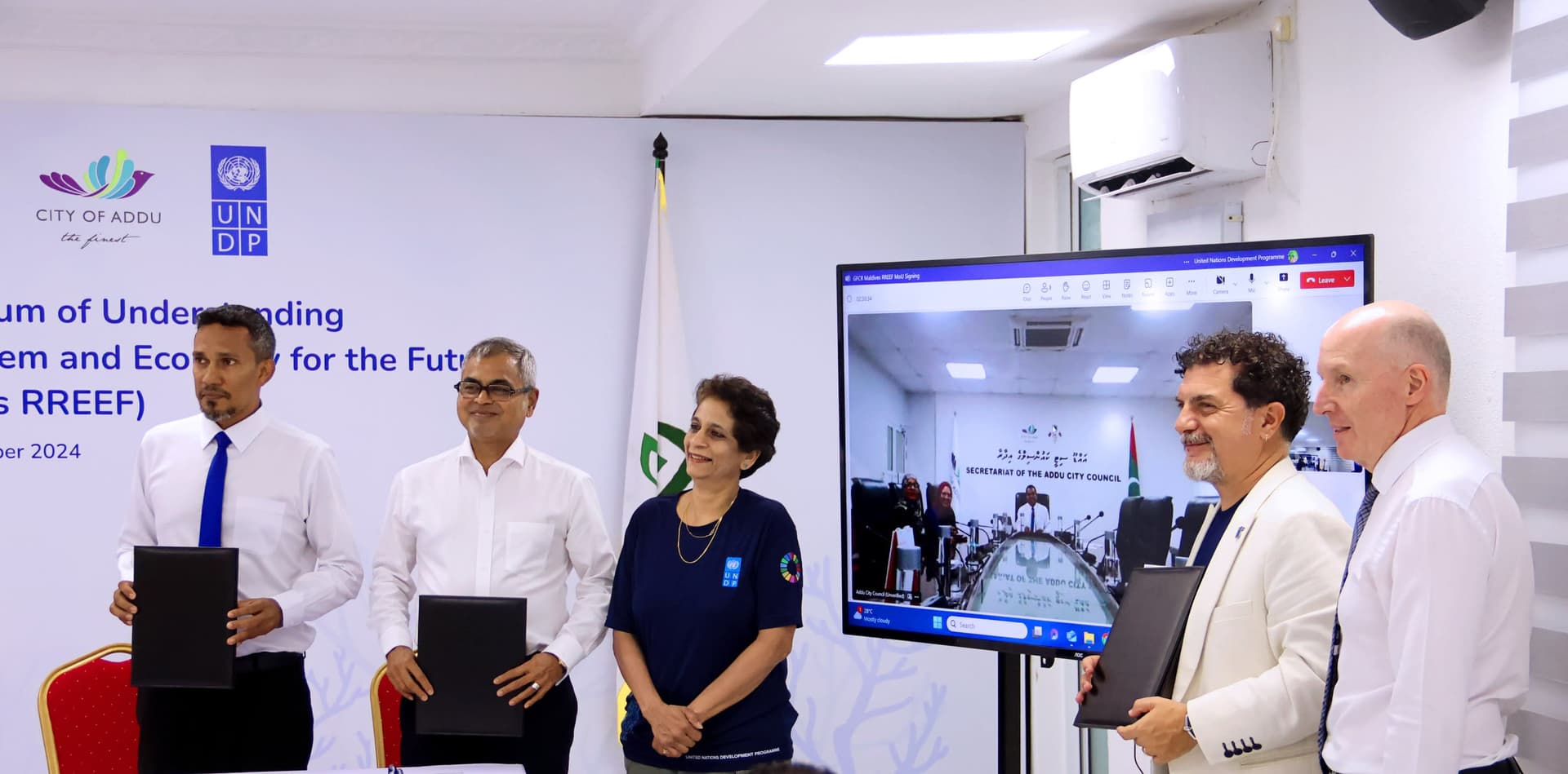 ފުވައްމުލައް ސިޓީ ކައުންސިލާއި ޔުނައިޓެޑް ނޭޝަންސް ޑިވެލޮޕްމަންޓް ޕްރޮގްރާމް (ޔޫއެންޑީޕީ) އަދި މިނިސްޓްރީއޮފް ކްލައިމްޓް މޫސުމީ ބަދަލުތަކާއި ތިމާވެއްޓާއި ހަކަތައާ ބެހޭ ވުޒާރާއާއި ދެމެދު މޯލްޑިވްސް ރެސިލިއަންޓް ރީފް އިކޯސިސްޓަމް އެންޑް އިކޮނޮމީ ފޯރ ދަ ފިއުޗާ ޕްރޮޖެކްޓުގެ ދަށުން ފުވައްމުލައް ނޭޗާ ޕާކް ތަރައްގީކޮށް މަރާމާތު ކުރުމުގެ ފަހުމުނާމާގައި ސޮއިކޮށްފިއެވެ.